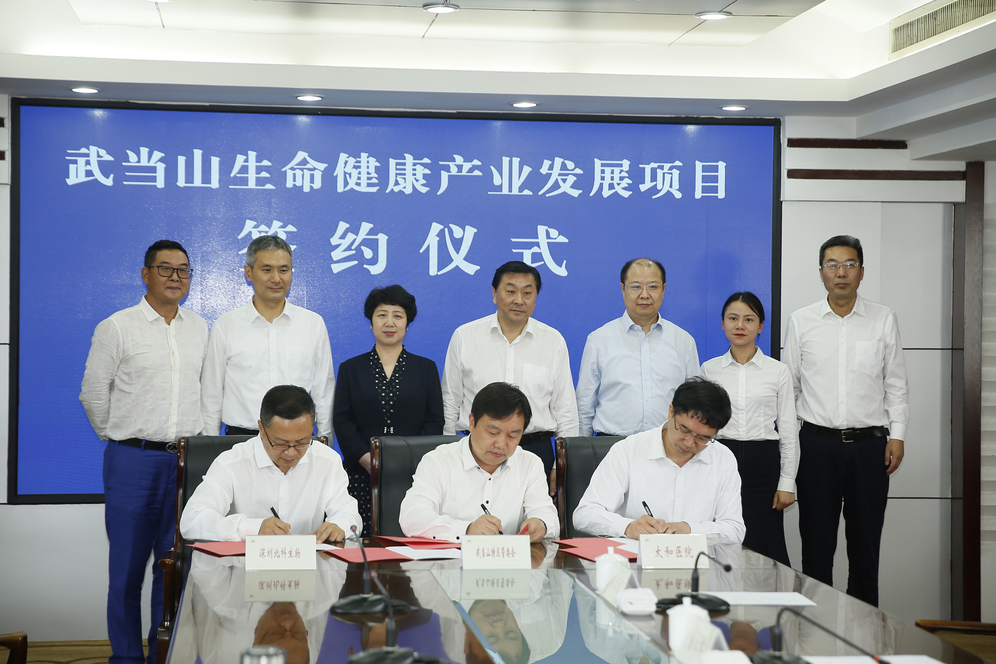 簽約儀式現(xiàn)場,深圳市北科生物科技有限公司、特區(qū)管委會、太和醫(yī)院代表三方共同簽訂了協(xié)議。北科生物科技有限公司與太和健康投資管理有限責(zé)任公司簽訂了協(xié)議。