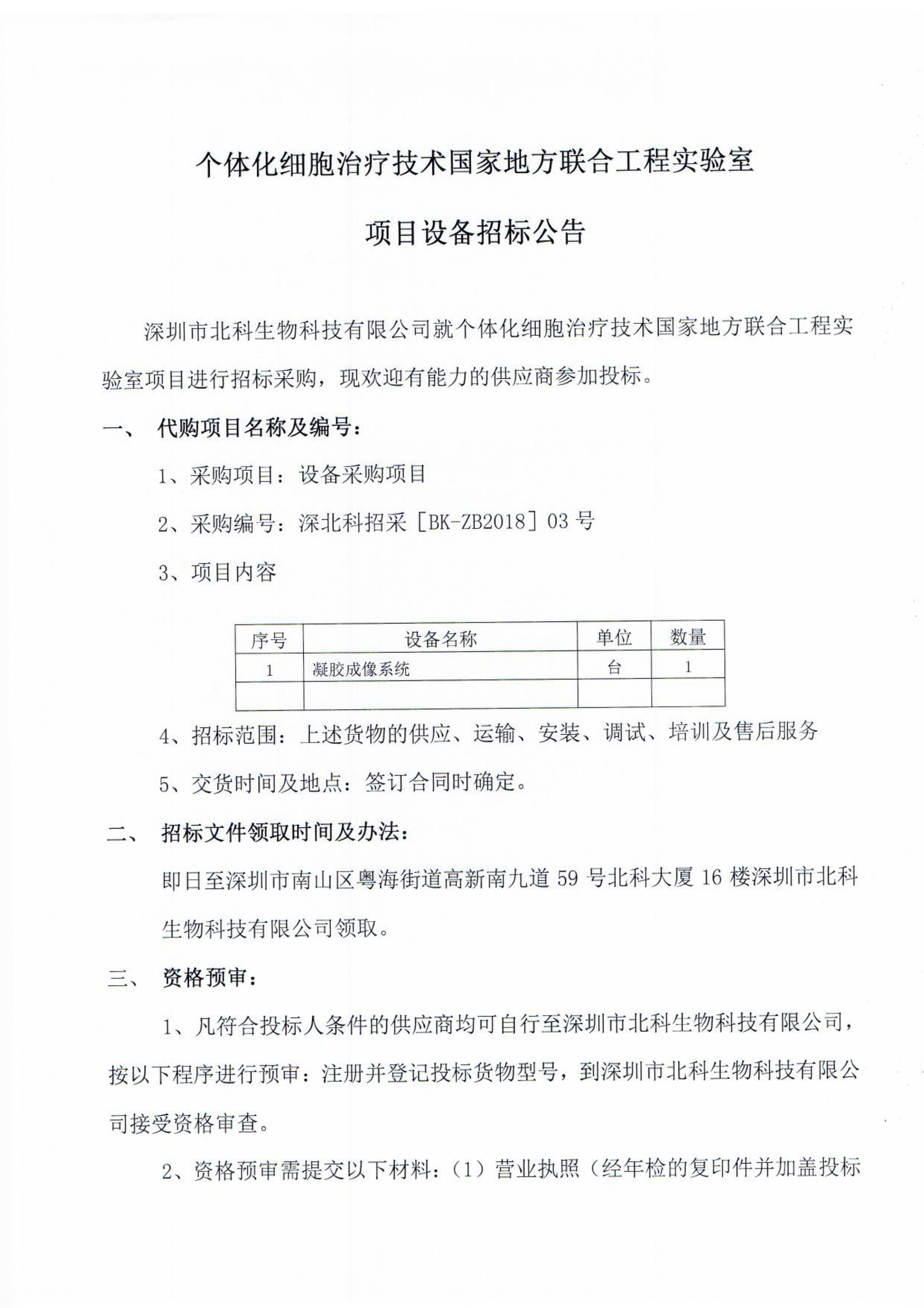 個體化細胞治療技術國家地方聯(lián)合工程實驗室項目設備招標公告