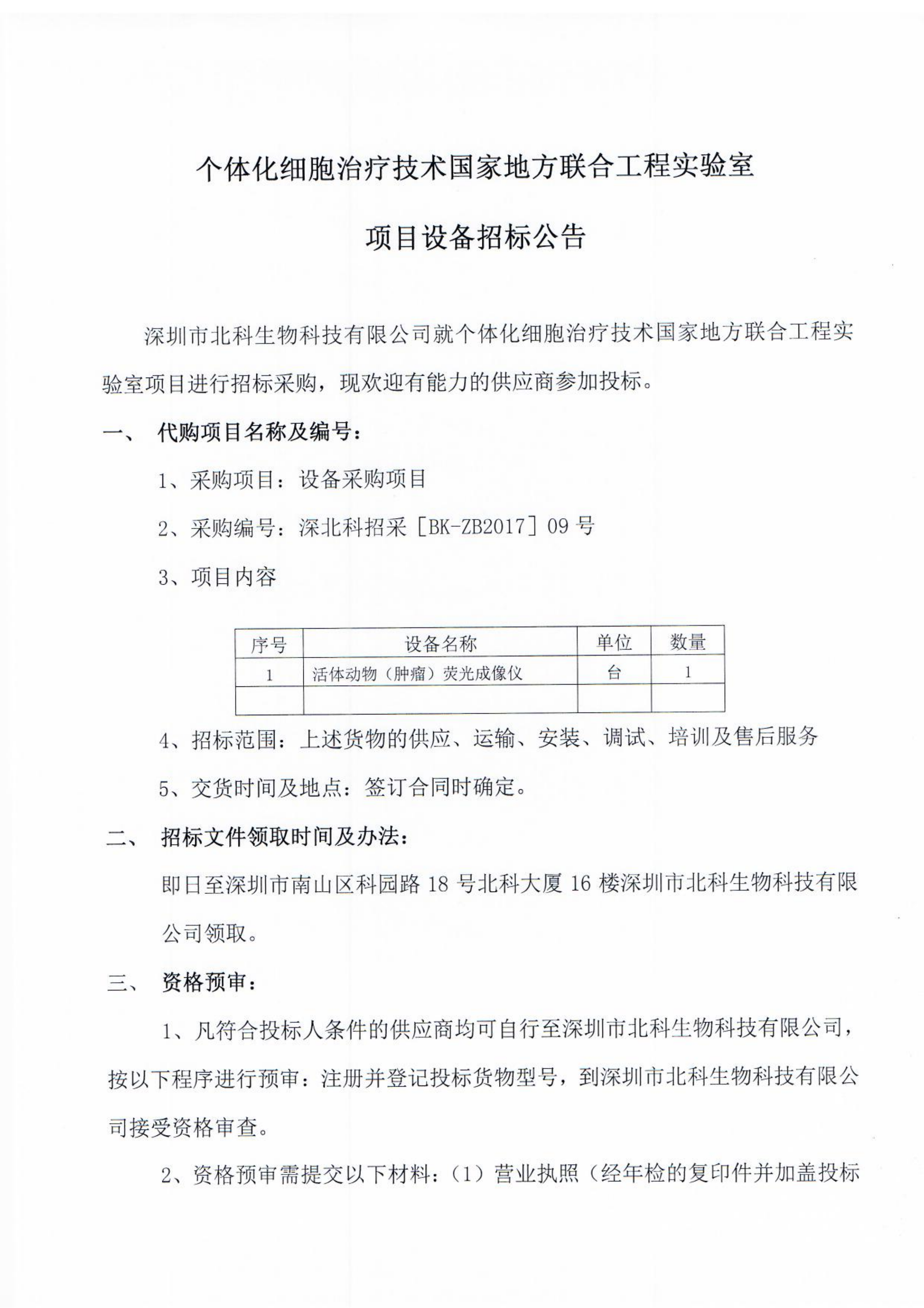 個體化細(xì)胞治療技術(shù)國家地方聯(lián)合工程實驗室項目設(shè)備招標(biāo)公告