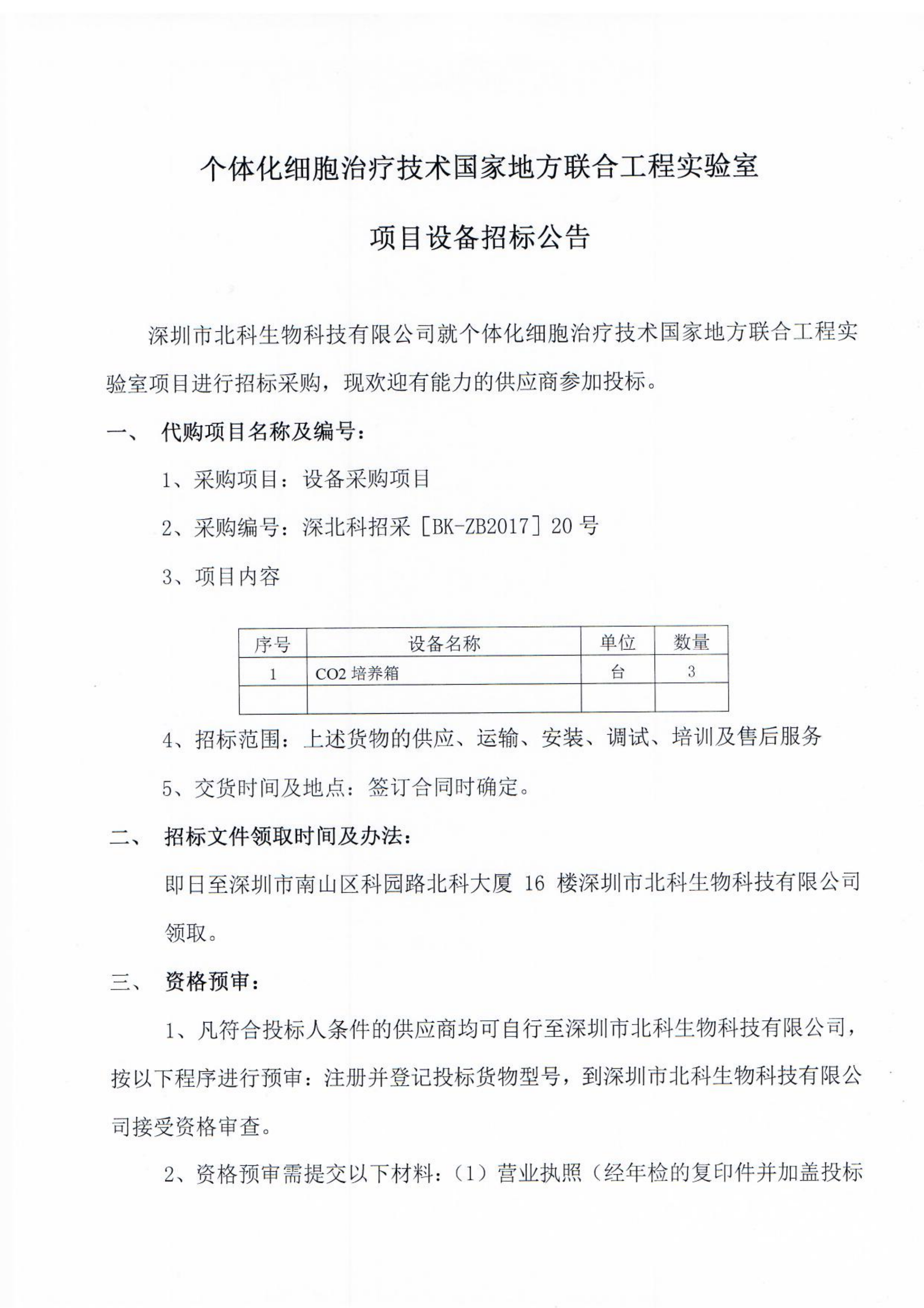 個(gè)體化細(xì)胞治療技術(shù)國家地方聯(lián)合工程實(shí)驗(yàn)室項(xiàng)目設(shè)備招標(biāo)公告