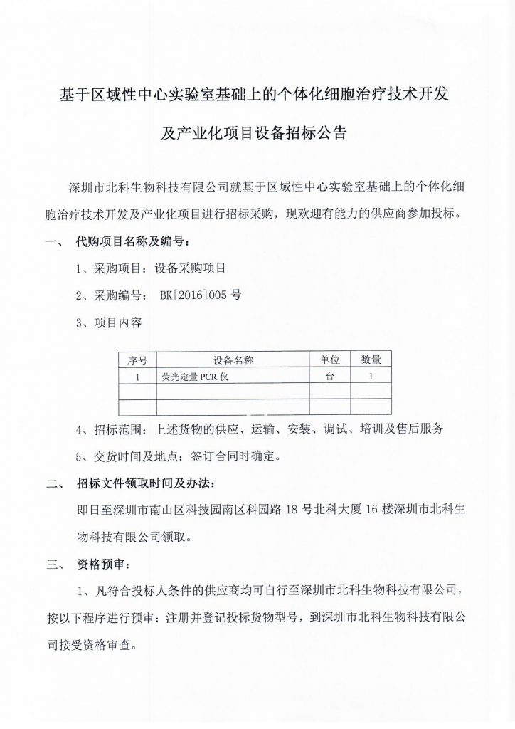 基于區(qū)域性中心實(shí)驗(yàn)室基礎(chǔ)上的個(gè)體化細(xì)胞治療技術(shù)開(kāi)發(fā)及產(chǎn)業(yè)化項(xiàng)目設(shè)備招標(biāo)公告