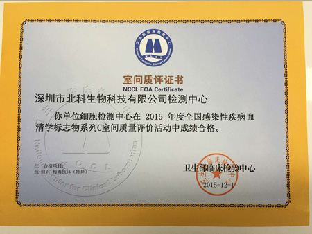 至今,北科生物自2011年以來,已參加4次衛(wèi)生部臨床檢驗中心組織的室間質評活動,均獲得合格的《室間質評證書》;今后,深圳細胞質量檢測平臺將持續(xù)參加室間質評項目,為客戶儲存的細胞及制備臨床級細胞提供更安全保障。