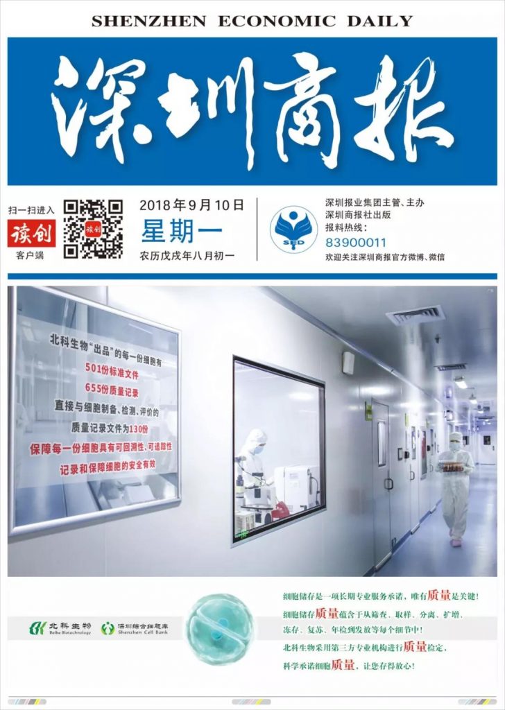 【深圳商報(bào)】北科生物科學(xué)承諾細(xì)胞質(zhì)量,讓您存得放心!